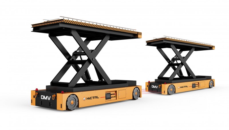 OMV聯動轉運設備通過激光測距保持等距同步,獨特通訊技術,無需任何鏈接介質,真正獨立雙車聯動、同步控制。通過激光標識點識別感知技術,結合獨特算法,實現全自動糾偏,使兩車距離偏差控制在2mm以內。