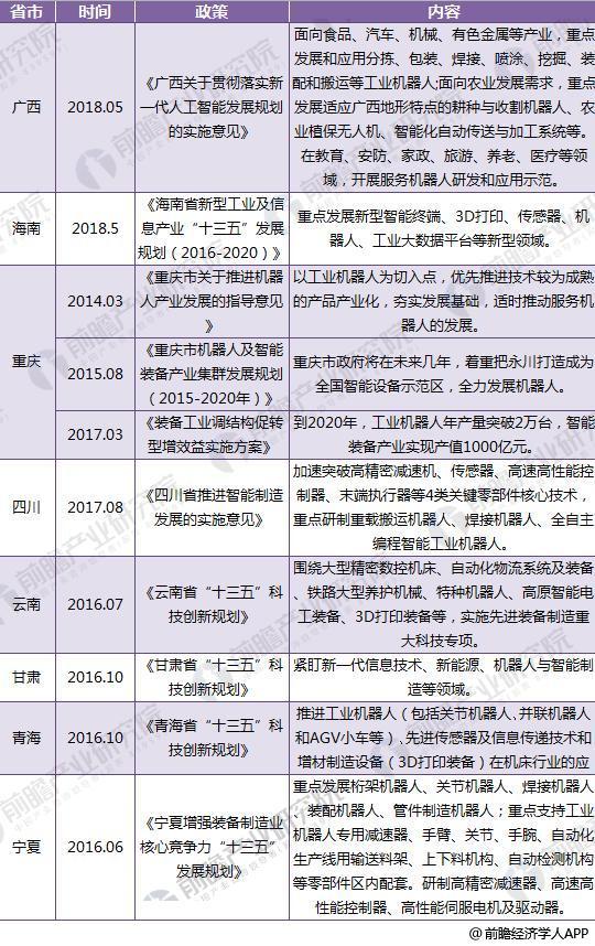 圖表5:截至2018年31省市機器人相關(guān)政策匯總(四)
