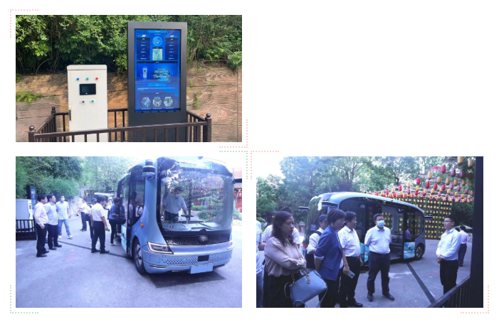 會后,雙方來到璧山秀湖公園,體驗了公司與重慶文旅集團、宇通客車股份有限公司聯(lián)合打造的重慶首輛無線充電無人駕駛觀光車。