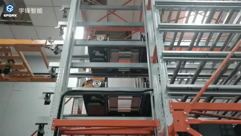 物料被提升機(jī)與輸送線運(yùn)輸至一層,經(jīng)由智能穿梭車(chē)進(jìn)行接駁,穿梭車(chē)沿預(yù)定的軌道載貨運(yùn)行,實(shí)現(xiàn)貨物向貨位的存儲(chǔ),項(xiàng)目從產(chǎn)線到庫(kù)存,實(shí)現(xiàn)無(wú)縫對(duì)接,滿足客戶按照訂單生產(chǎn)出入庫(kù)的需求。