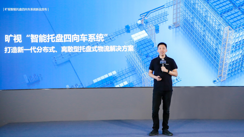 曠視聯(lián)合創(chuàng)始人、物流業(yè)務(wù)事業(yè)部產(chǎn)研負(fù)責(zé)人唐文斌發(fā)布曠視智能托盤四向車系統(tǒng)