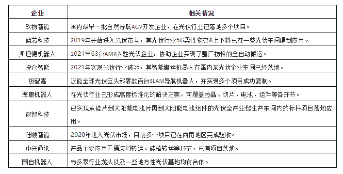 圖表:光伏行業(yè)主要AGV/AMR供應(yīng)商
