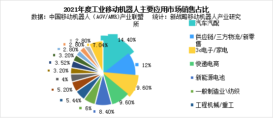 圖表:2021年度工業(yè)移動(dòng)機(jī)器人主要應(yīng)用市場(chǎng)