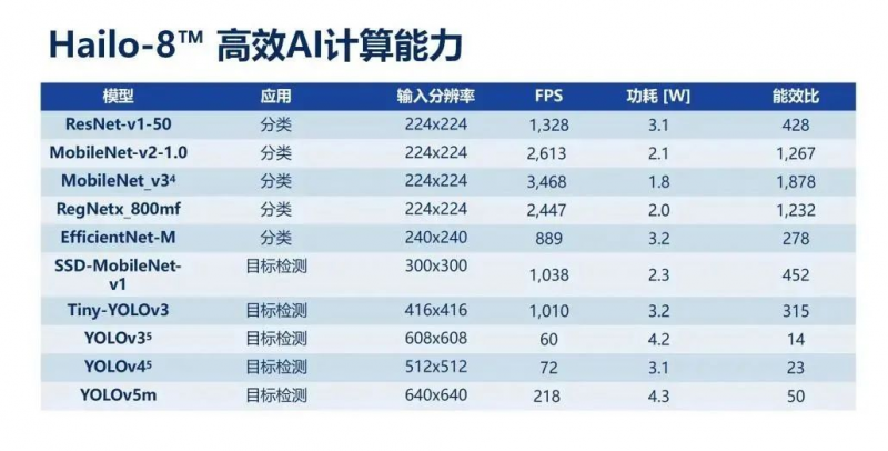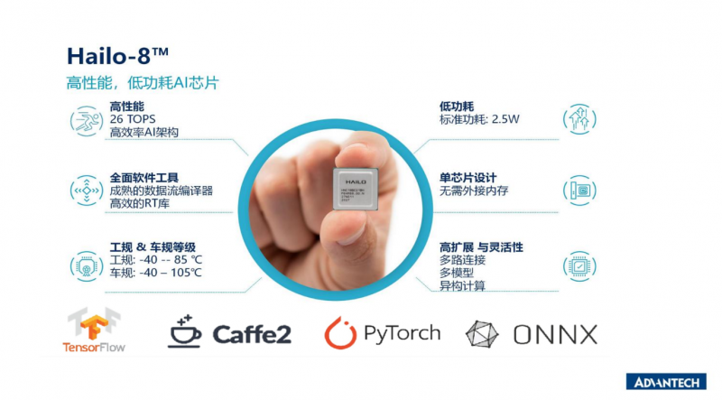 該方案采用Hailo-8高性能芯片,同時可支持Tensorflow Lite、Caffe、PyTorch、ONNX等多種AI框架,計算能力高效。