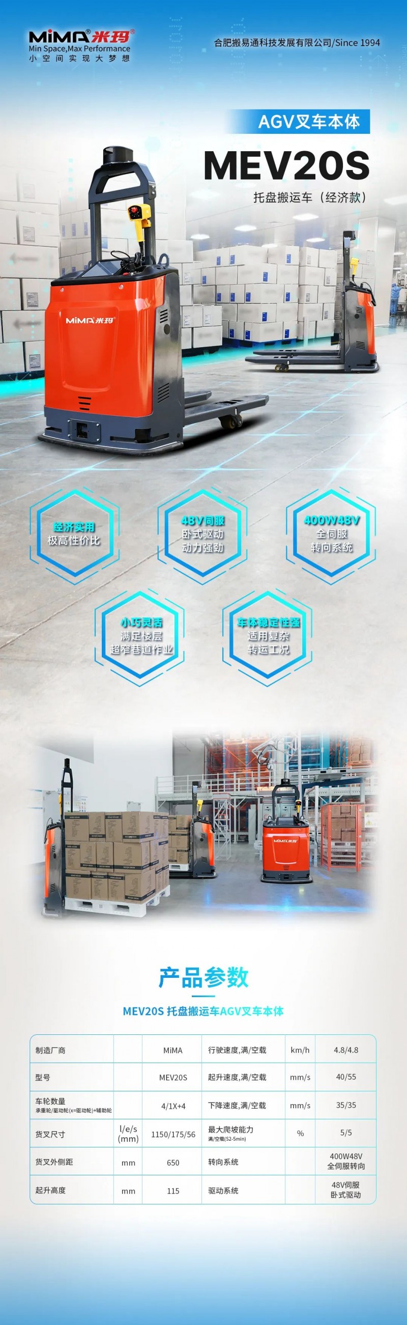 合肥搬易通(MiMA米瑪)始創(chuàng)于1994年,是國內(nèi)領(lǐng)先的內(nèi)部物流解決方案供應(yīng)商。公司占地面積7.2萬平方米,員工人數(shù)超600人,擁有超100人的高素質(zhì)研發(fā)團(tuán)隊,是安徽省首批國家級重點“專精特新”小巨人企業(yè)。公司憑借先進(jìn)的電動叉車研發(fā)技術(shù)、完善的產(chǎn)品體系和售后服務(wù),為成千上萬的客戶提供量身定制的解決方案。