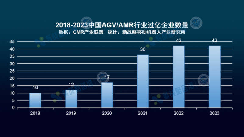銷(xiāo)售過(guò)億企業(yè)42家-2023年中國(guó)AGV/AMR市場(chǎng)集中度分析