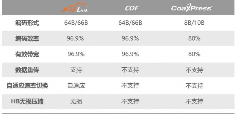 XoFlink采用64/66B編碼形式,效率以及最大帶寬大幅提升。另外XoFlink協議支持HB無損壓縮算法的植入,可以更大程度提升鏈路帶寬。并且XoFlink協議支持數據重傳和自適應速度切換,能有效保證傳輸穩定性。