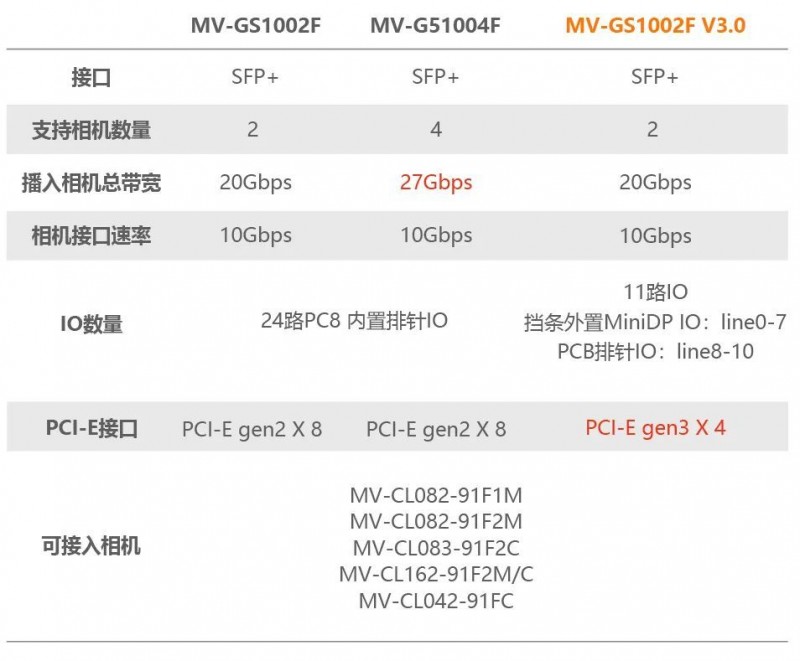 • 10G XoFlink V3.0系列(新):MV-GS1002F V3.0、MV-GS1004F V3.0、MV-GS1104F。