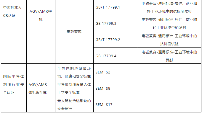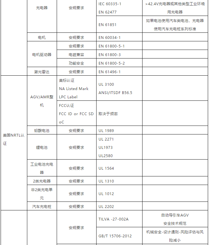 現(xiàn)有AGV/AMR及零部件法規(guī)標(biāo)準(zhǔn)一覽