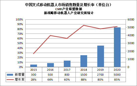 2020年度中國叉式移動機器人銷量達5000臺