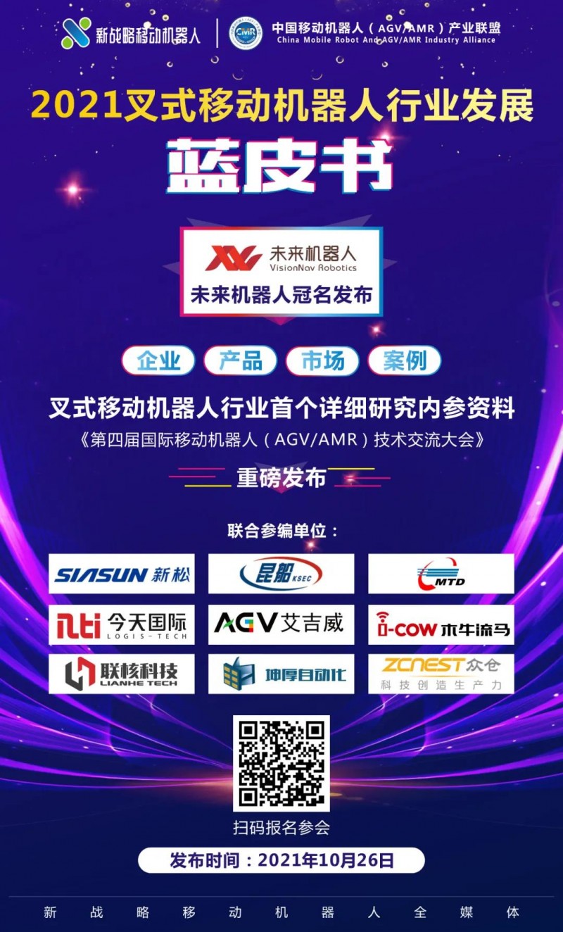 核心提示:中國移動機器人(AGV/AMR)產業聯盟與新戰略移動機器人產業研究所將聯合出版《2021叉式移動機器人行業發展藍皮書》。
