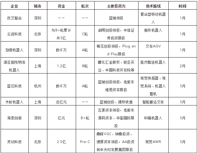 一季度,產品型公司開始集中爆發(fā),展露頭角。先后都拿到了資本方大小不等的融資,市場推進開始加快。例如海柔創(chuàng)新、優(yōu)艾智合、未來機器人等。經過前期的發(fā)展,這些產品公司的相關產品已經得到了市場驗證,開始進入成熟期,加上資本助力,市場拓展由此開始加速。