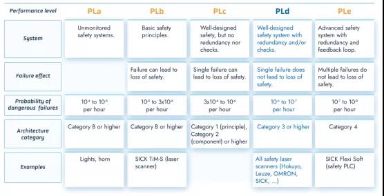 EN ISO 13849-2015標準定義了不同安全部件所需的性能級別(PLa to PLe)。行業(yè)標準要求AGV制造商達到的是PLd級別的安全規(guī)劃。具體來說,這種安全水平確保了車輛在發(fā)生單一故障時仍能繼續(xù)運行,例如使用兩個冗余通道。在斷層同步堆積的情況下,仍然可能發(fā)生安全功能的喪失,盡管這種可能性很小。