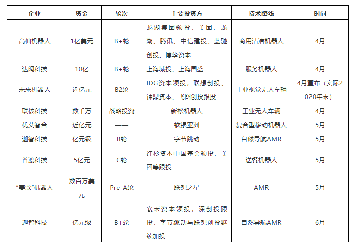 除工業(yè)應(yīng)用移動(dòng)機(jī)器人外,二季度獲得融資的還有聚焦于清潔機(jī)器人應(yīng)用的高仙、云端服務(wù)機(jī)器人企業(yè)達(dá)闥科技以及送餐機(jī)器人企業(yè)普渡科技,疫情原因,商用移動(dòng)機(jī)器人落地速度加快,經(jīng)過(guò)前期的落地應(yīng)用,部分技術(shù)成熟的企業(yè)脫穎而出,也得到了資本方的認(rèn)可。