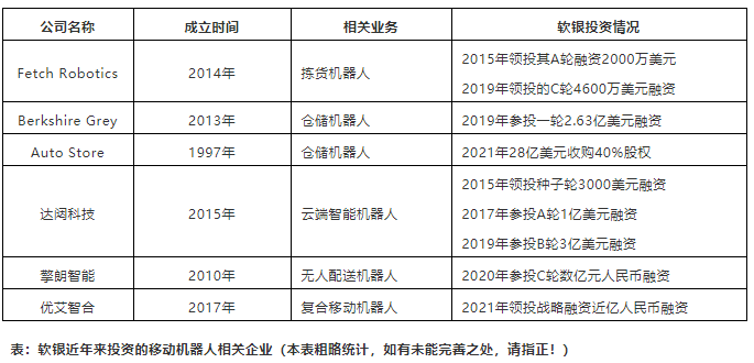 今年5月,軟銀領(lǐng)投了優(yōu)艾智合新一輪近億人民幣融資,但這也只是軟銀在移動機(jī)器人領(lǐng)域近40億美元投資的冰山一角。近年來,從倉儲物流到送餐服務(wù),軟銀在移動機(jī)器人行業(yè)頻頻出手。