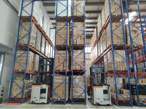 優(yōu)異的性能使得VDA116三向叉車自推出以來就受到了眾多用戶的青睞。某食品配送公司,每天有大量的物料需要進(jìn)出倉庫,之前都是采用地堆的方式存儲。隨著公司業(yè)務(wù)的不斷擴(kuò)大,原本的存儲方式已經(jīng)不能滿足他們現(xiàn)有的業(yè)務(wù)需求。只有將物料上貨架,在不改變現(xiàn)有倉儲面積的情況下,可以增加庫位。可是如果采用傳統(tǒng)貨架堆垛方式,在庫位的增加上并沒有很大的優(yōu)勢,未來業(yè)務(wù)再擴(kuò)張后,還將面臨儲位不足的問題。客戶多方比較后決定采用卓一的三向堆垛車來改造現(xiàn)在的倉庫。