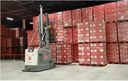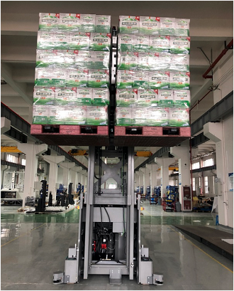 雙工位平衡重叉式AGV屬于國內(nèi)首創(chuàng),可同時插取兩個托盤,托盤載重可達(dá)3噸,并且其配備了3D相機識別系統(tǒng),在托盤直接堆垛存儲場景中,可識別托盤對地高度,輔助判斷貨叉提升高度,實現(xiàn)托盤準(zhǔn)確搬運,3層托盤直接堆垛,托盤堆垛高度可達(dá)6米左右,采用密集存儲的方式。對于百威啤酒這一類的易碎品,更加的安全可靠。