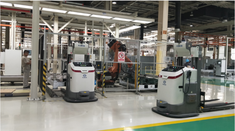 案例3:一汽錫柴 30臺叉車AGV+5臺倉儲機器人無縫銜接