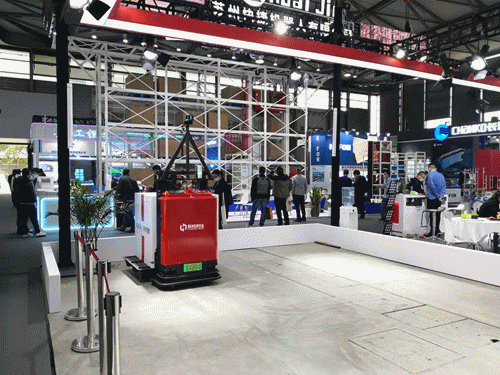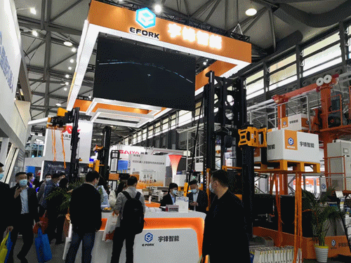 E系列及P系列視覺無人叉車,并現場演示了室內外裝卸貨車方案,其在復雜多變環境下的峰值工作效率與人工叉車可比擬。