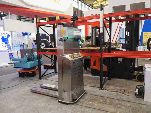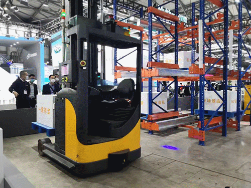 系列無人叉車產品,包括堆高式、平衡重式無人叉車等,并現場演示了月臺貨車裝卸方案。