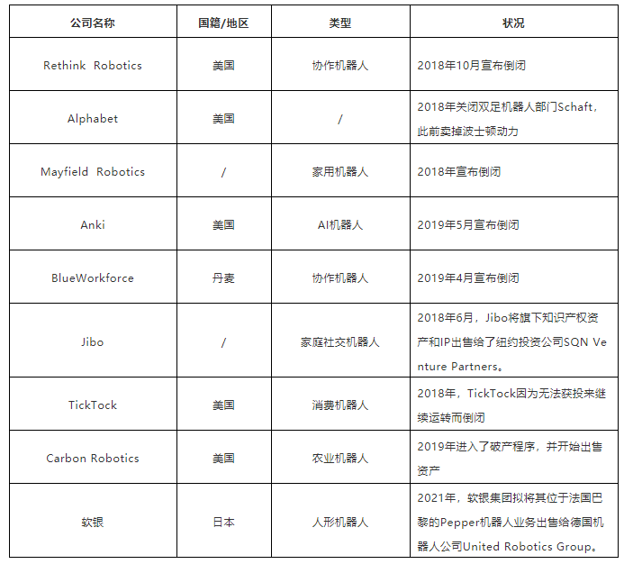 在整個(gè)機(jī)器人行業(yè)蓬勃向前的同時(shí),有一些企業(yè)在逐漸“掉隊(duì)”,近年來關(guān)閉或出售機(jī)器人相關(guān)業(yè)務(wù)的事件多達(dá)數(shù)起。