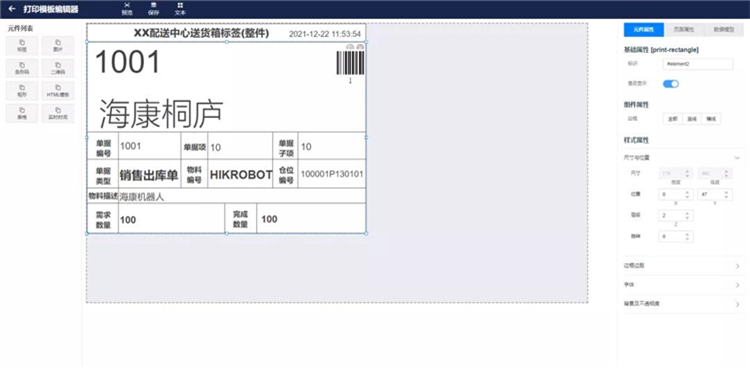支持自定義拖拽元件配置打印模板。