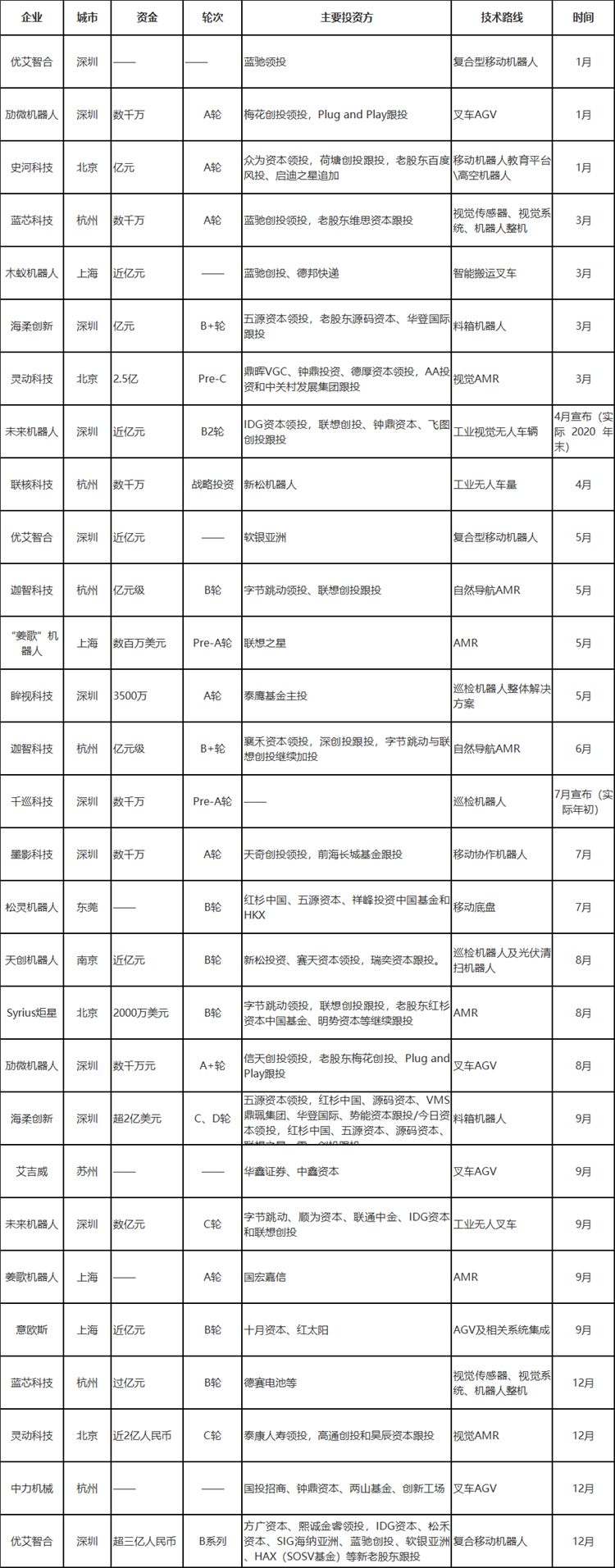 表:2021中國工業(yè)應(yīng)用移動機器人行業(yè)投融資情況(本表根據(jù)企業(yè)公開融資信息統(tǒng)計,如有未完善之處,請指正!)