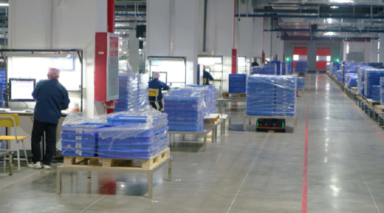 目前已部署潛伏和叉取系列機器人,共計近300臺AMR運行在智能工廠中,覆蓋3個樓層,涉及原材料倉儲、車間產(chǎn)線配送、成品倉儲。