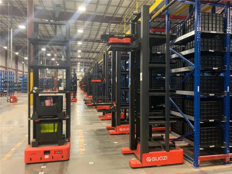 2017年初,國自機器人針對史泰博倉庫的需求,為其打造了多層料箱揀貨機器人Picking,Picking AGV叉取高度可達3米多,且在巷道內無需轉彎即可叉卸貨箱,大且一次性可攜帶多個SKU箱。